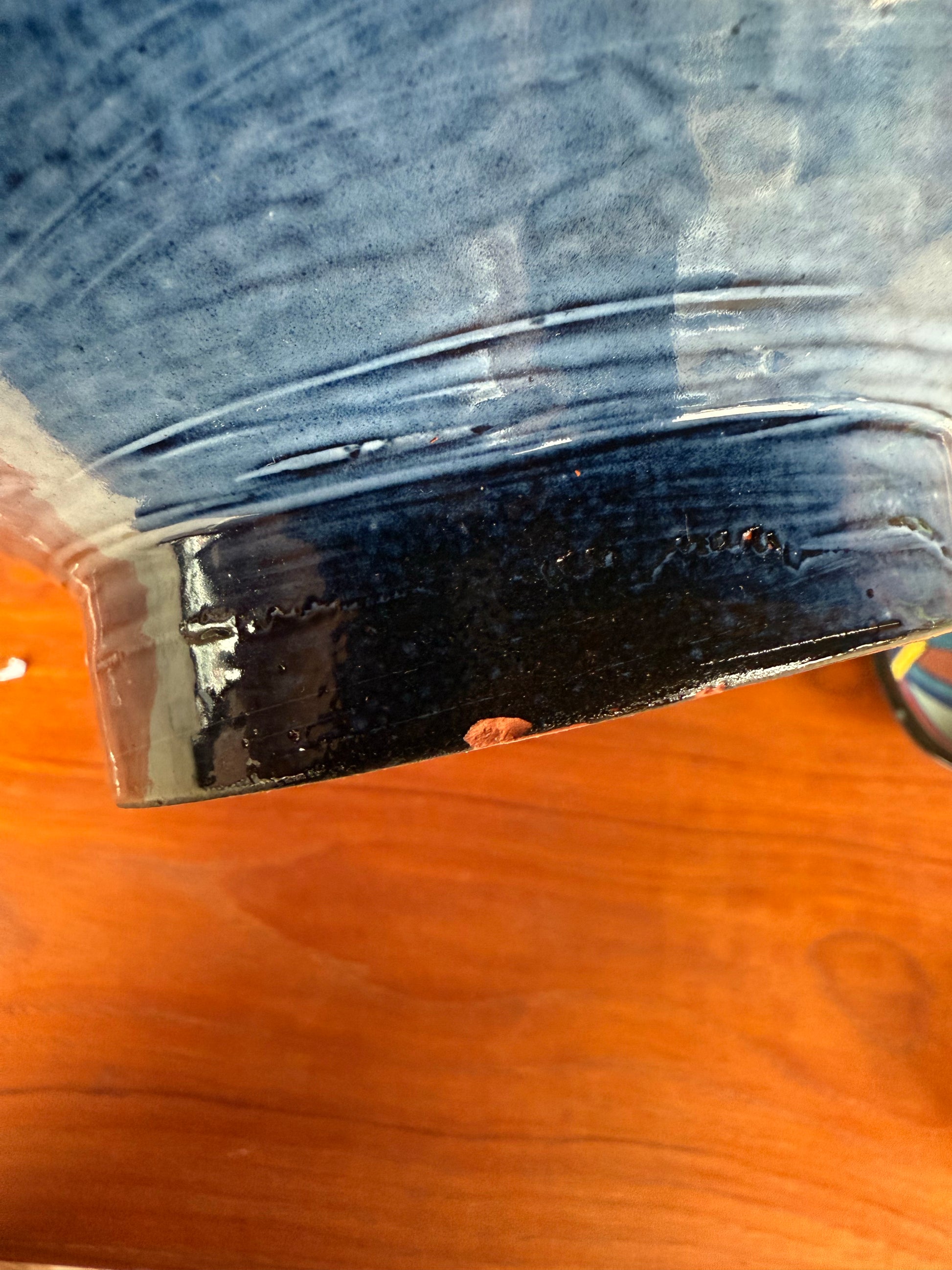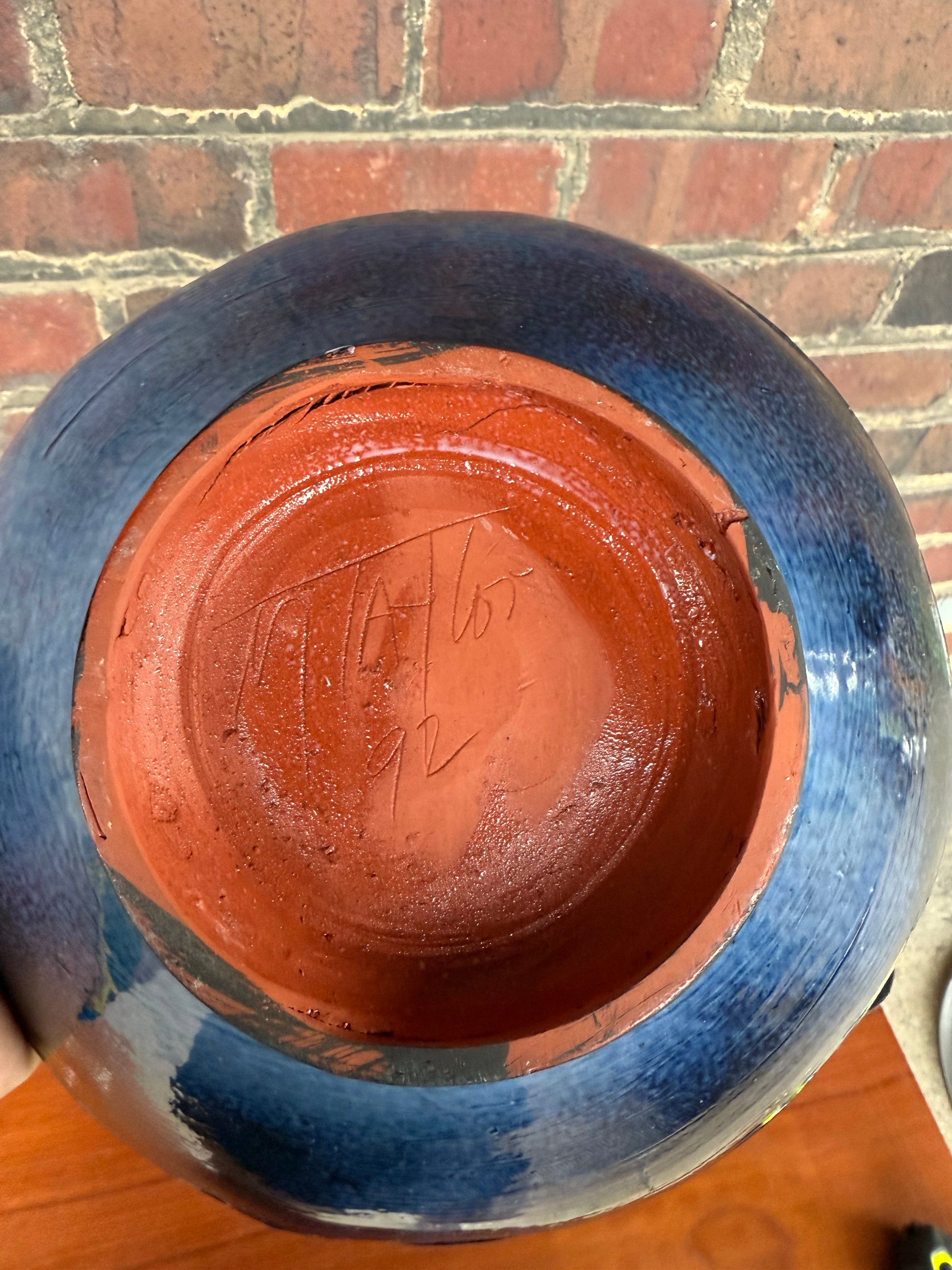 A stunning example of early 1990s Southern studio pottery—perfect for collectors or lovers of vibrant handmade ceramics.