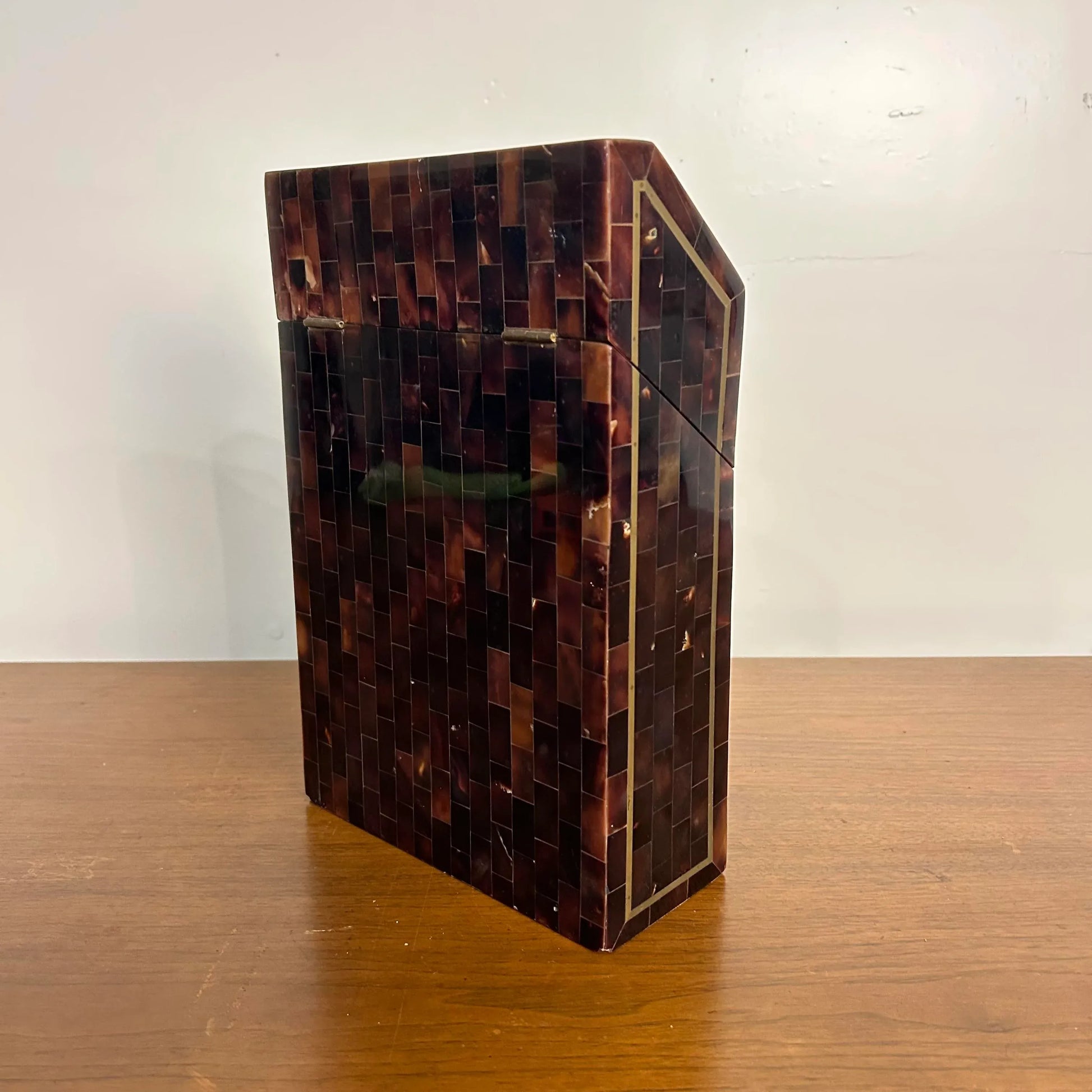 Tessellated Marble Box Maitland Smith box in the style of Karl Springer. Box has brass detailing and wood inside.