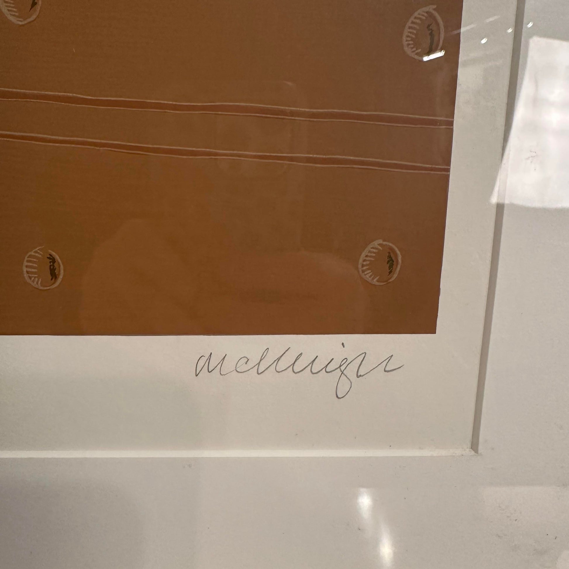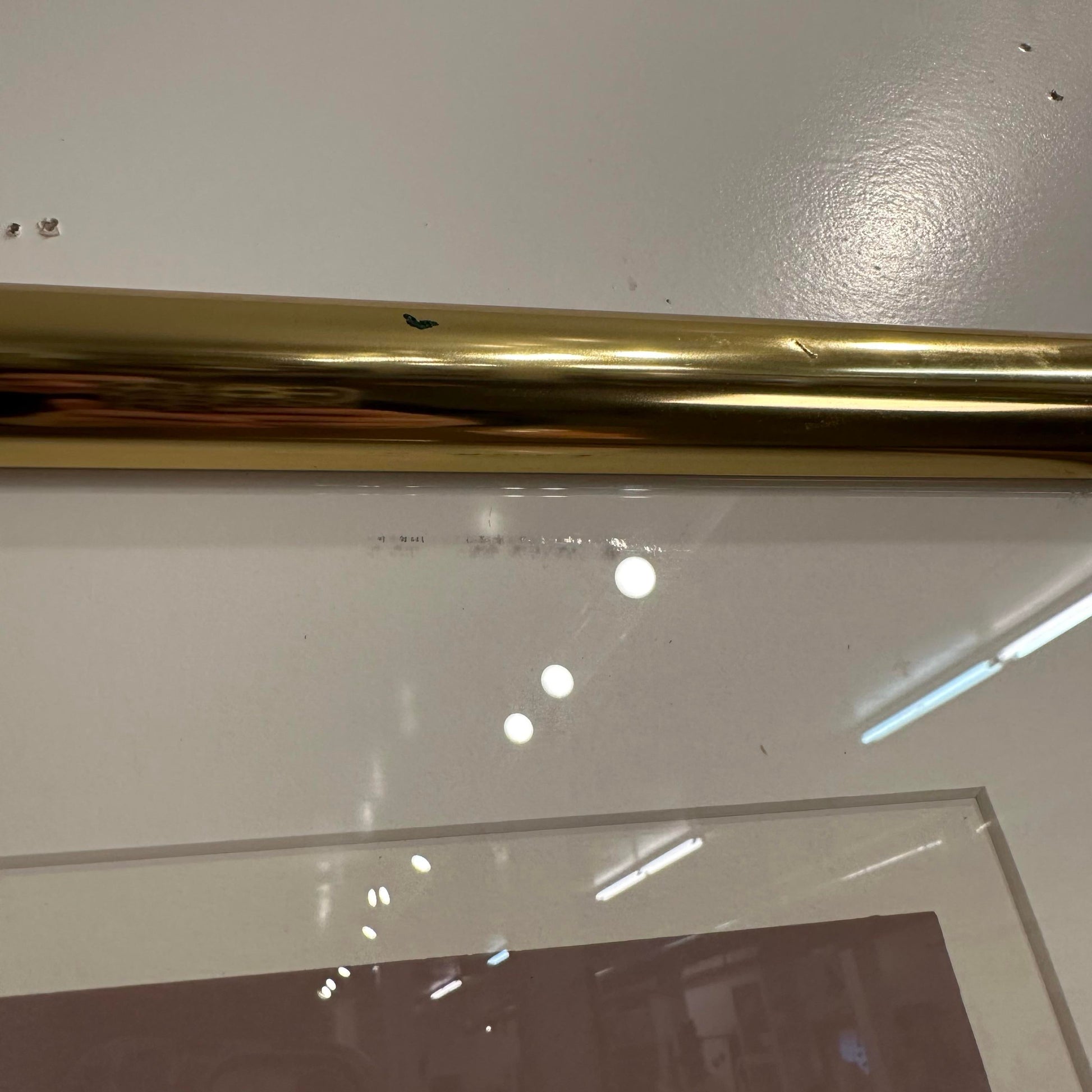 This serigraph has been professionally framed in a brass metal frame with glass front.