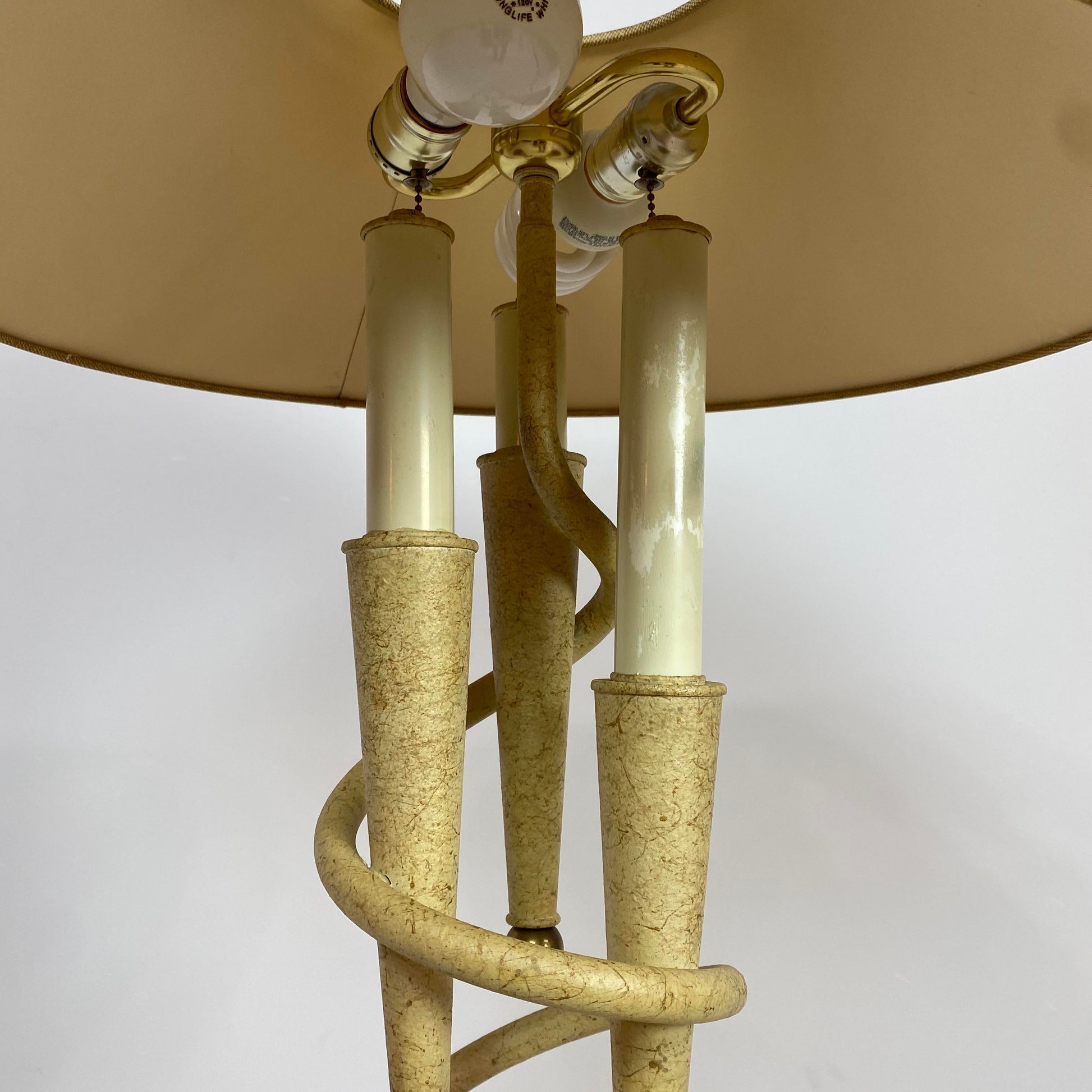 This sculptural metal base coils up and surrounds the bulb's sockets that are adorned with brass detailings. There is a two-switch setting so you may enjoy a softer light setting with just one bulb on or both of them on for a brighter light setting.