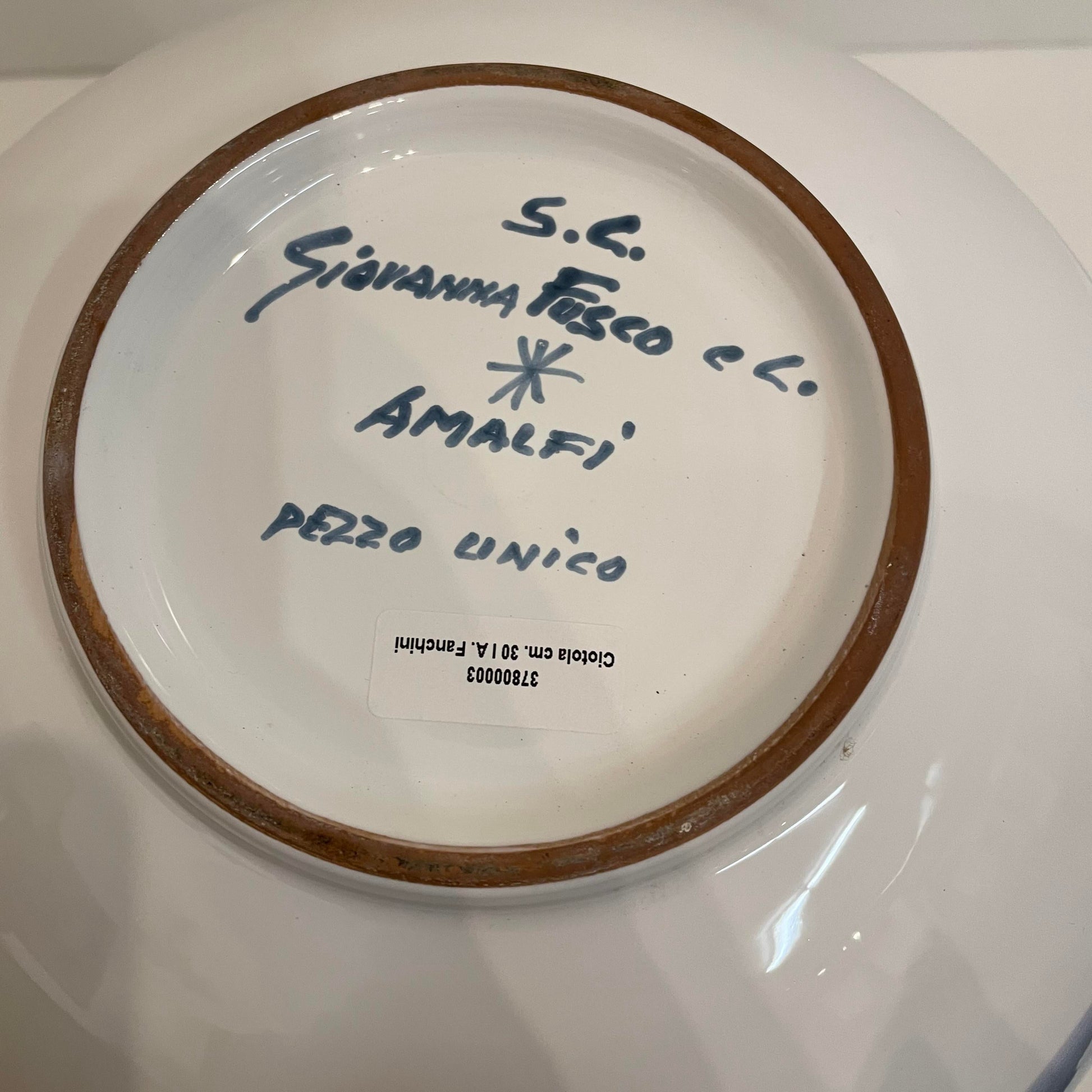 Vintage Italian ceramic decorative bowl. The bowl was hand made and hand painted in Italy by artist A. Franchini. The artist signature is on the inside of the bowl and it has a lovely hand painted design in blues and greens.