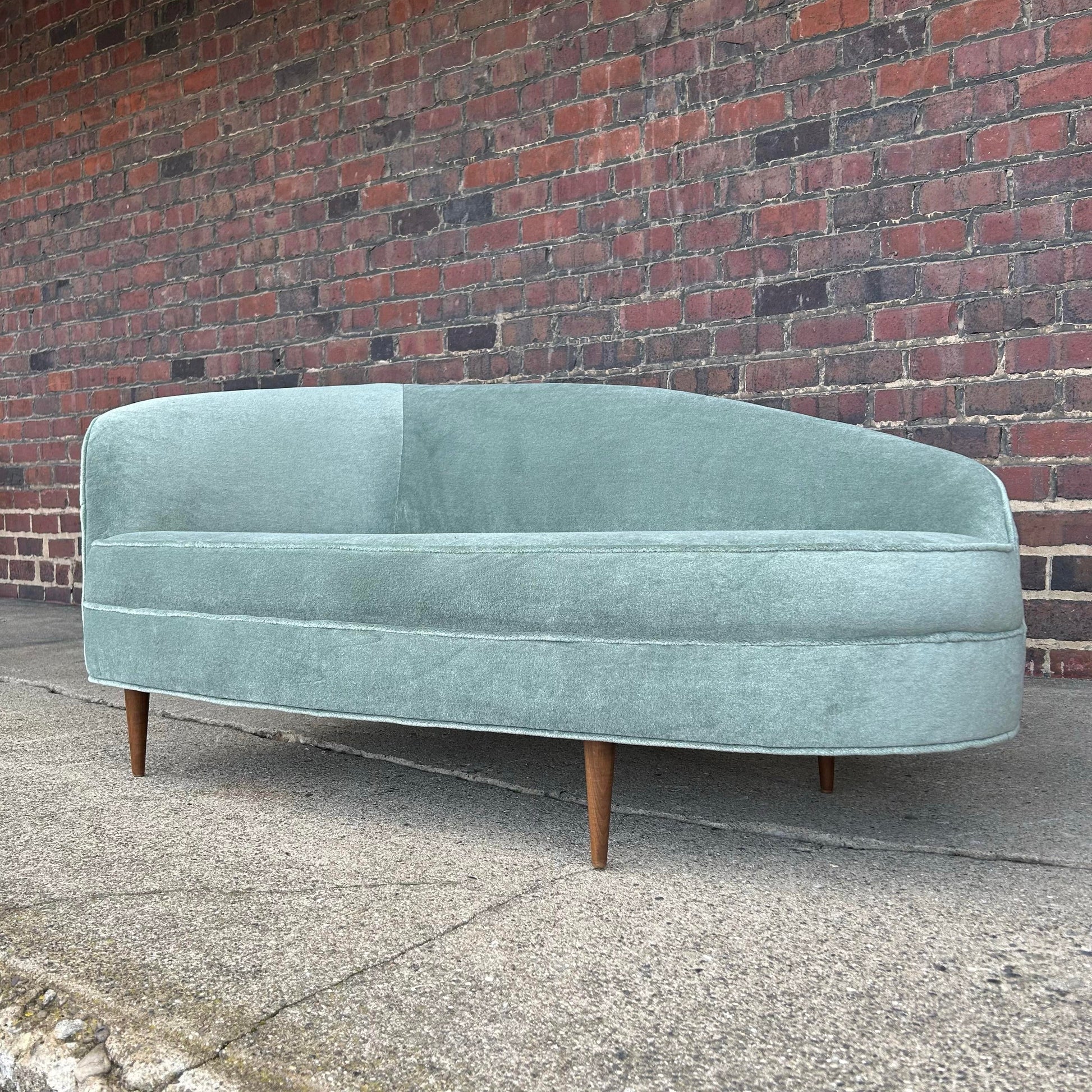 Vintage Chaise Lounge Covered in a Lush Velvet Faux Mohair Light Blue Green