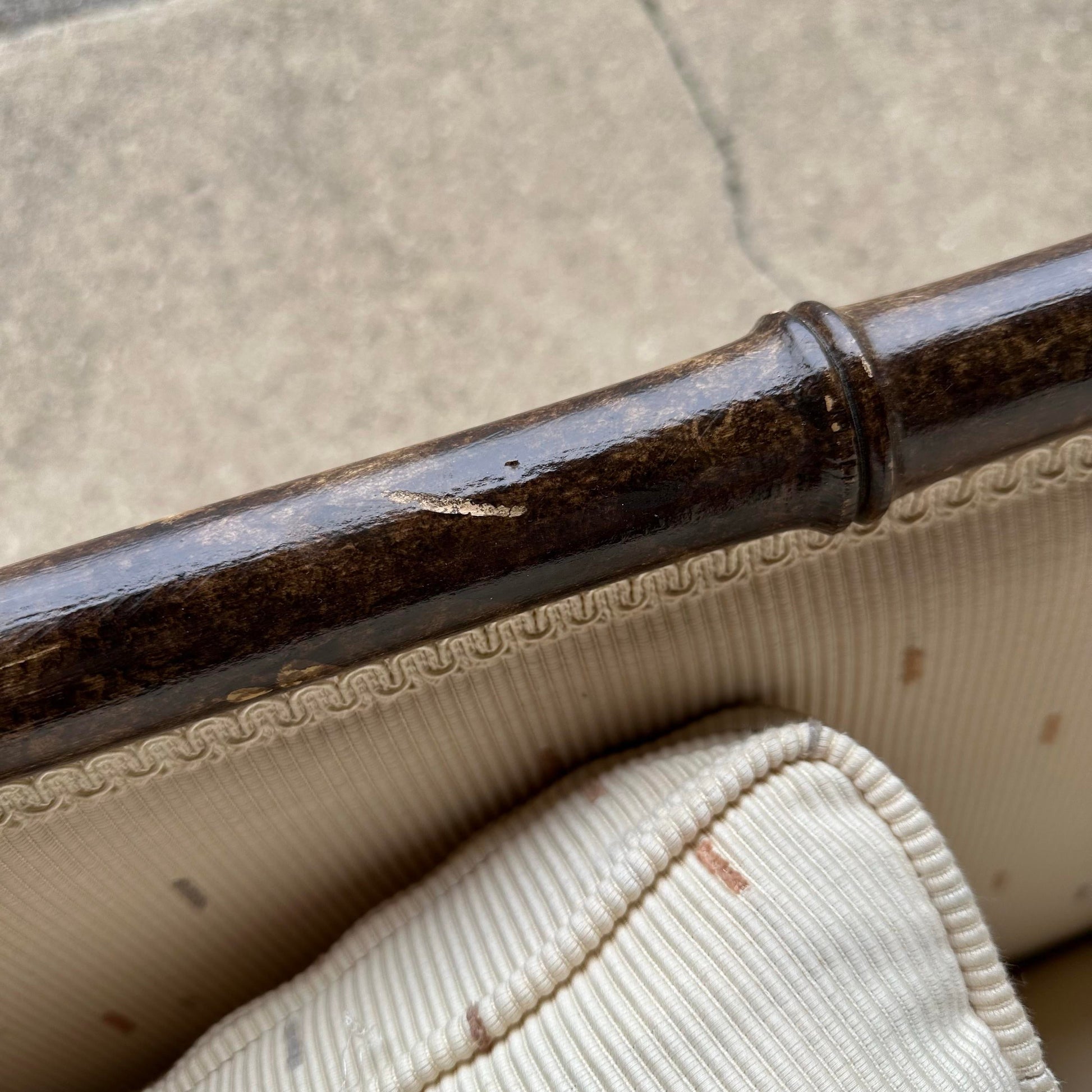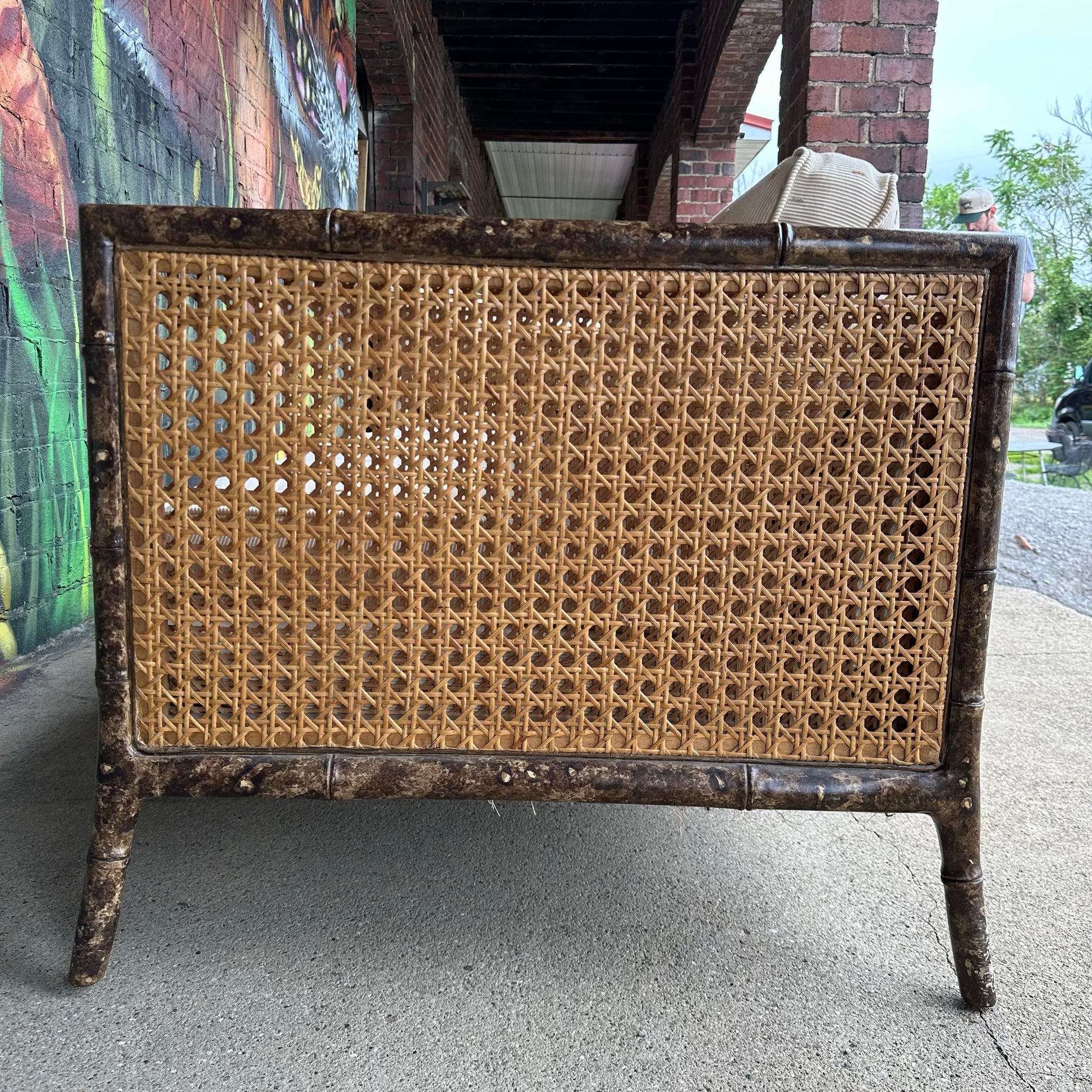 Vintage Faux Bamboo Sofa With Caned Arms in Style of Robsjohn Gibbings Mid-Century Modern