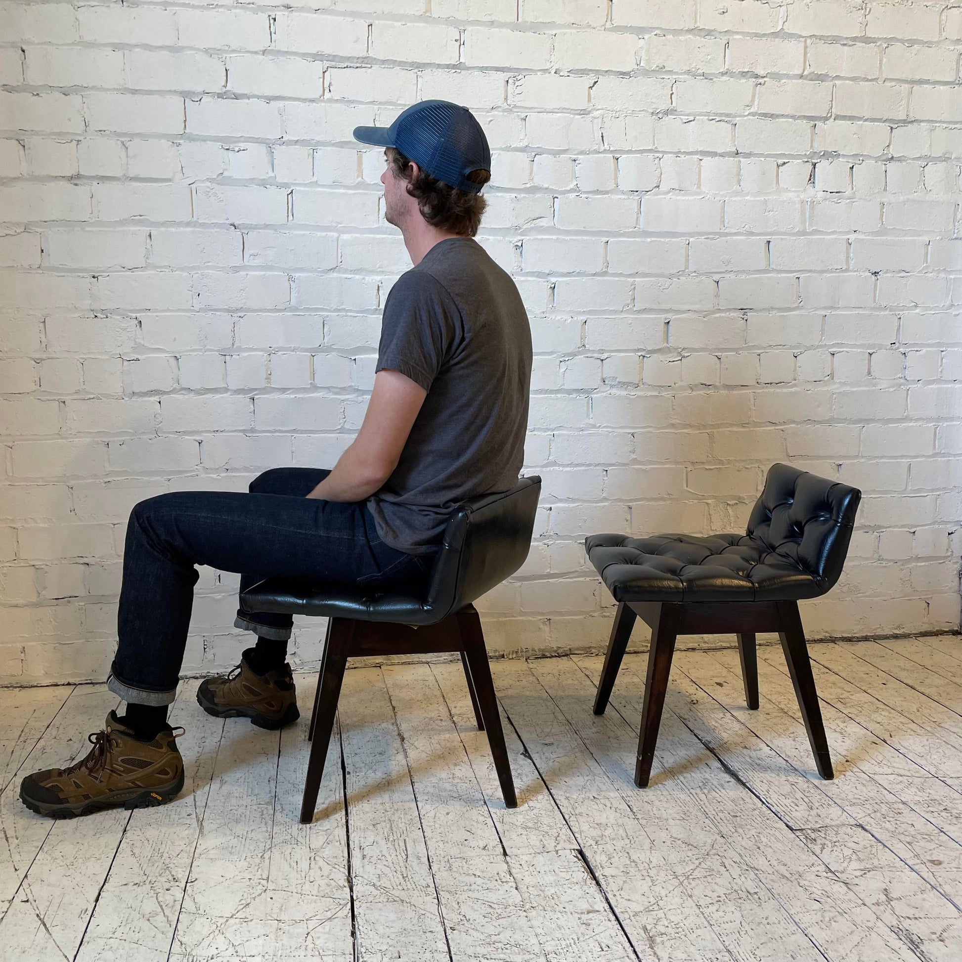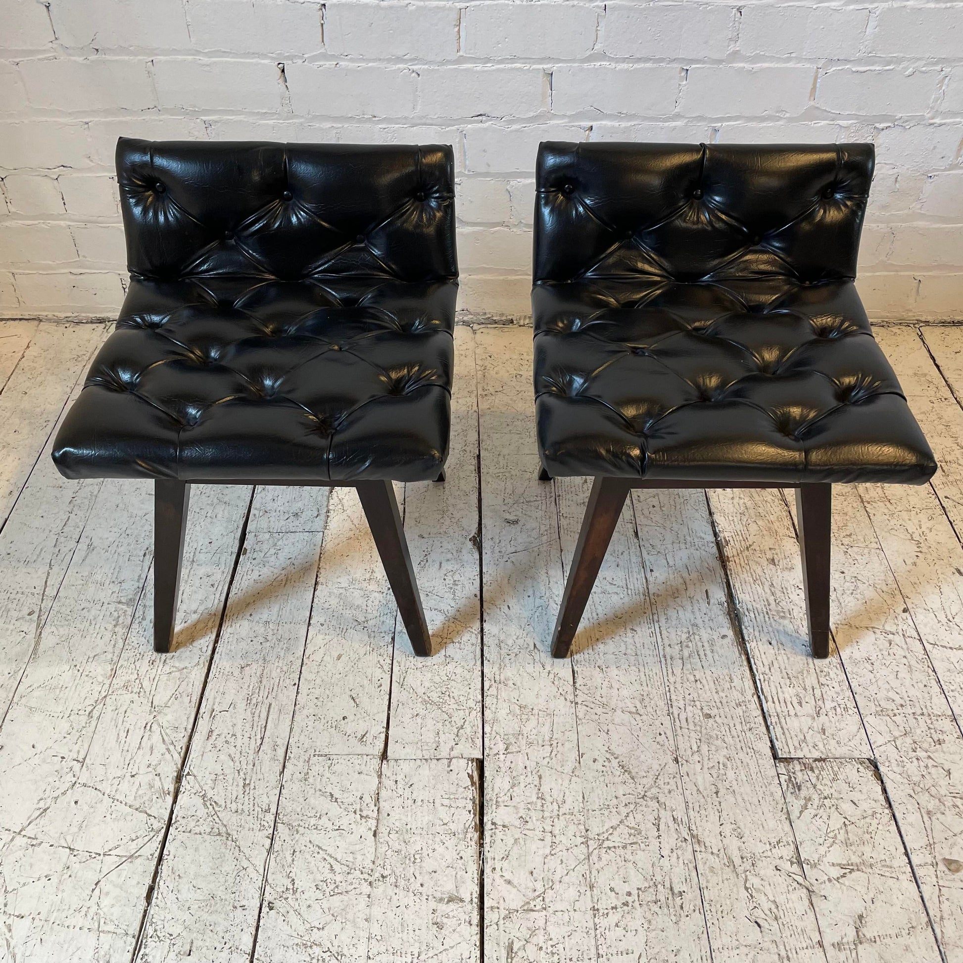 Vintage Mid Century Vinyl Stool Chairs - a Pair
