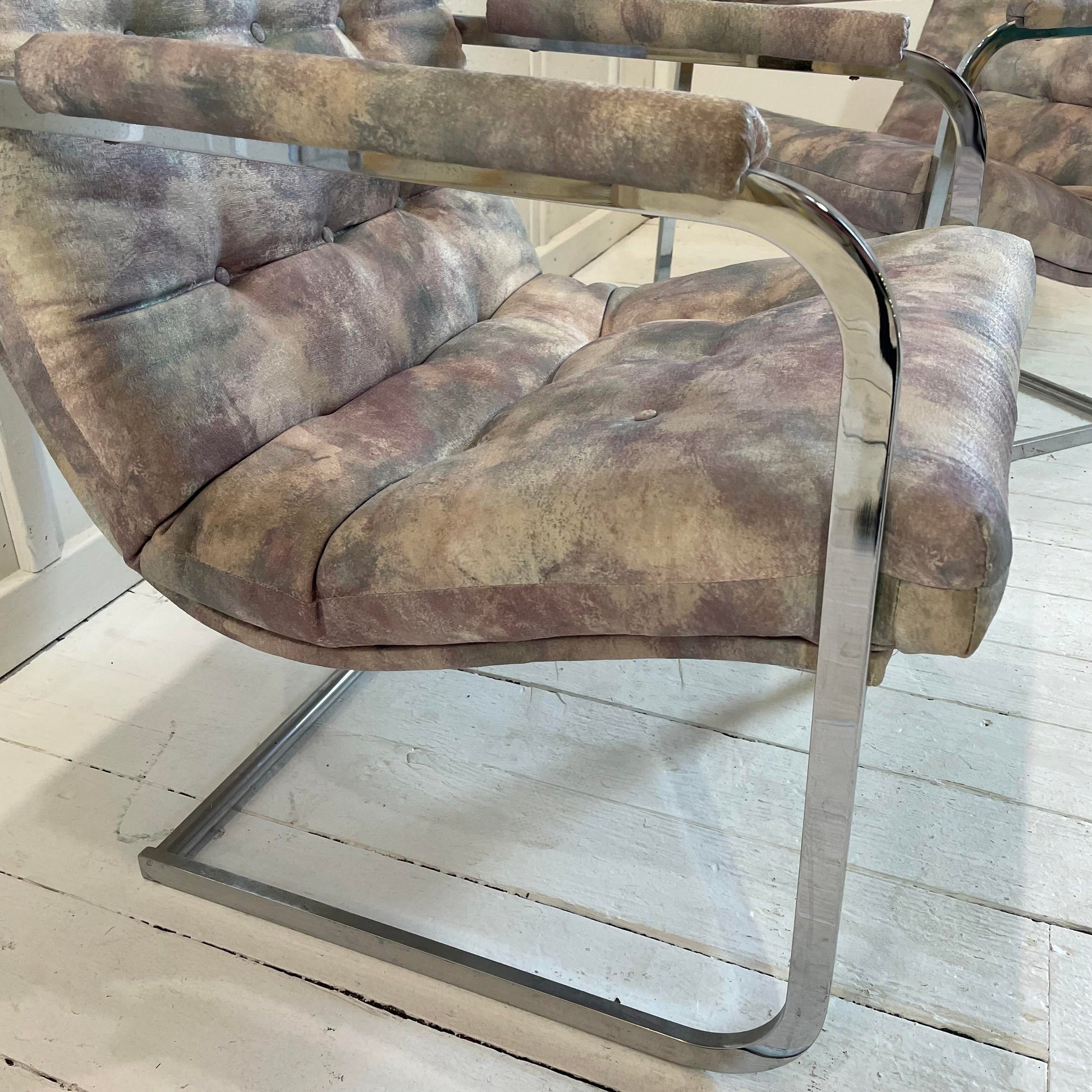 Vintage Milo Baughman Style Chrome Cantilevered Club Chairs - a Pair
