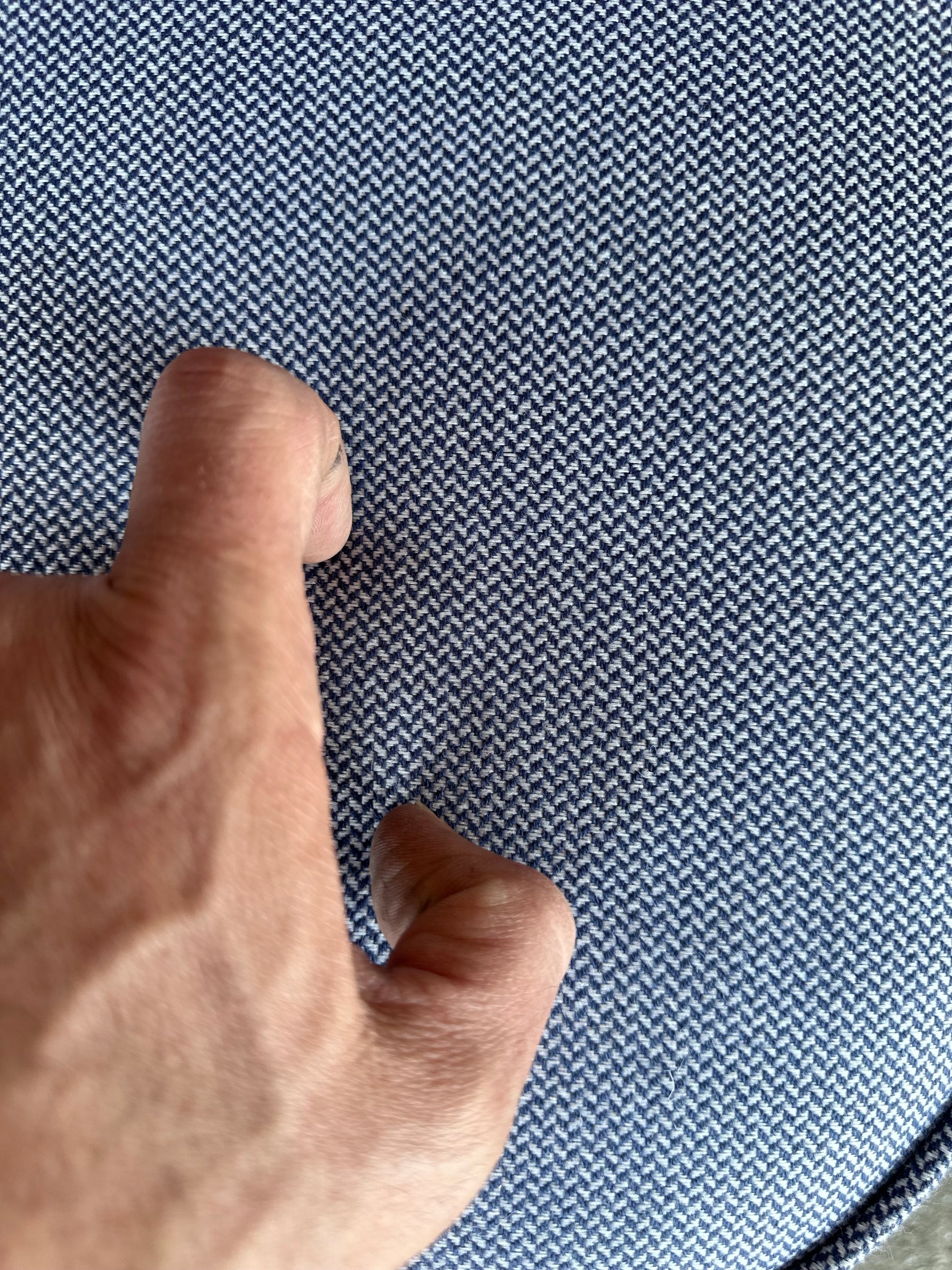 Professionally restored vintage patio set featuring six chairs and a dining table. Each piece has undergone meticulous sandblasting and powder coating, resulting in a sleek navy blue finish. The chairs have also been professional reupholstering in a stylish white and blue herringbone outdoor fabric, while the table does not come with a glass top, it reduces the shipping costs, which offsets the expense of acquiring a brand piece of glass.