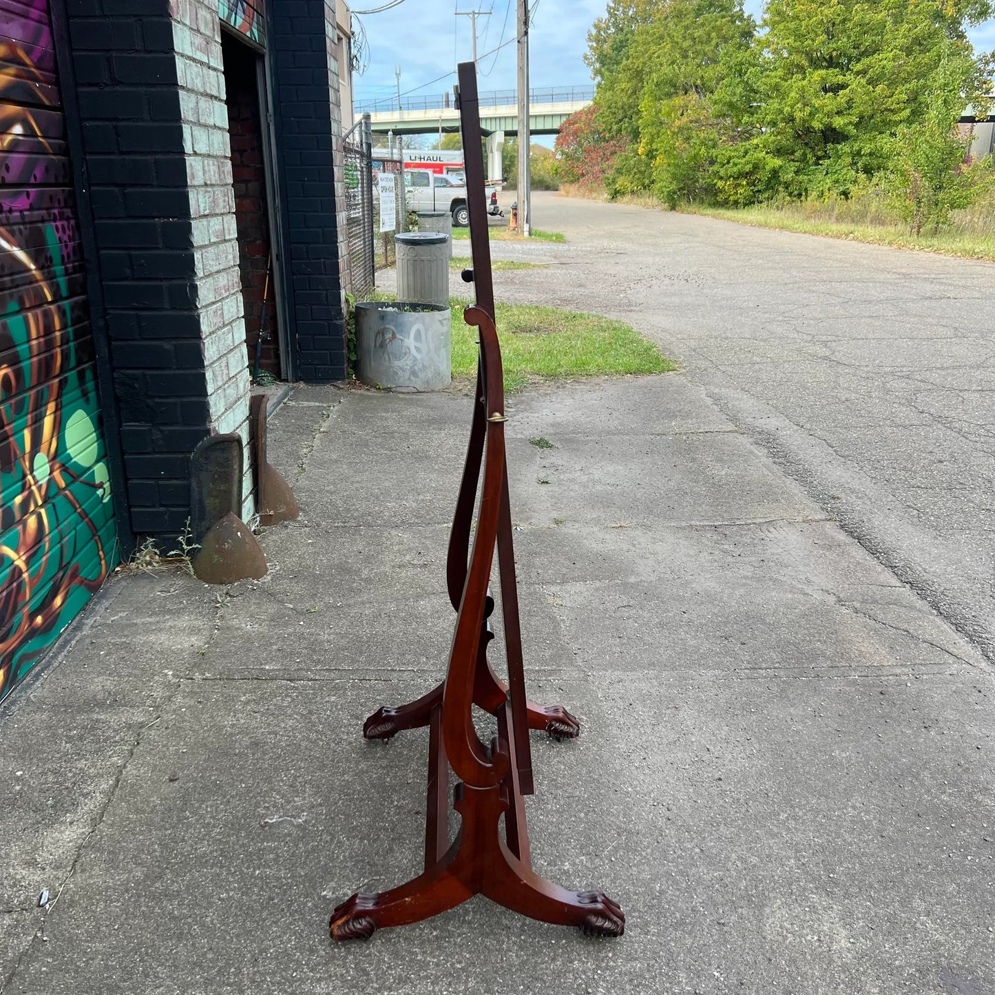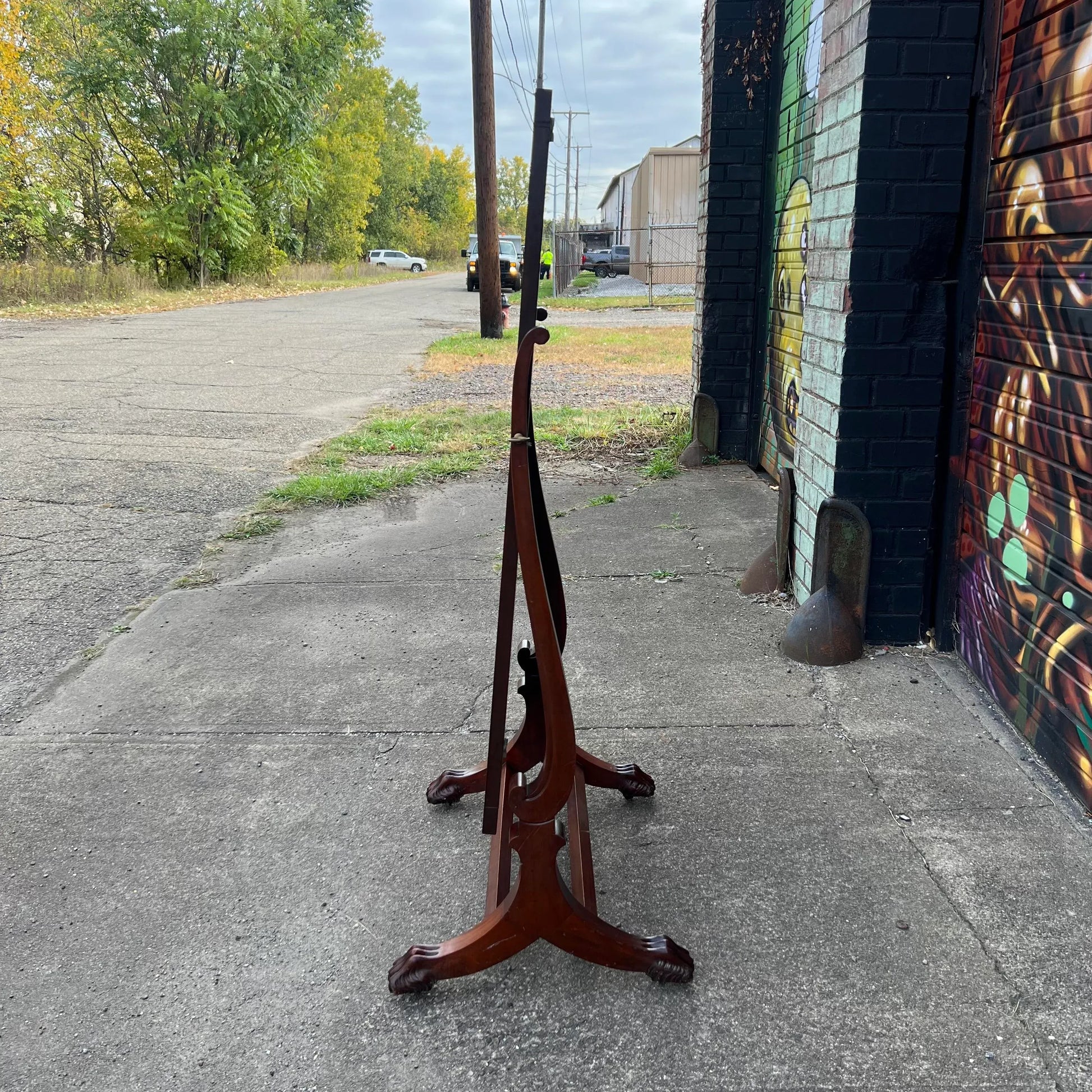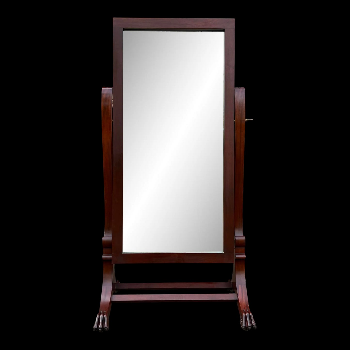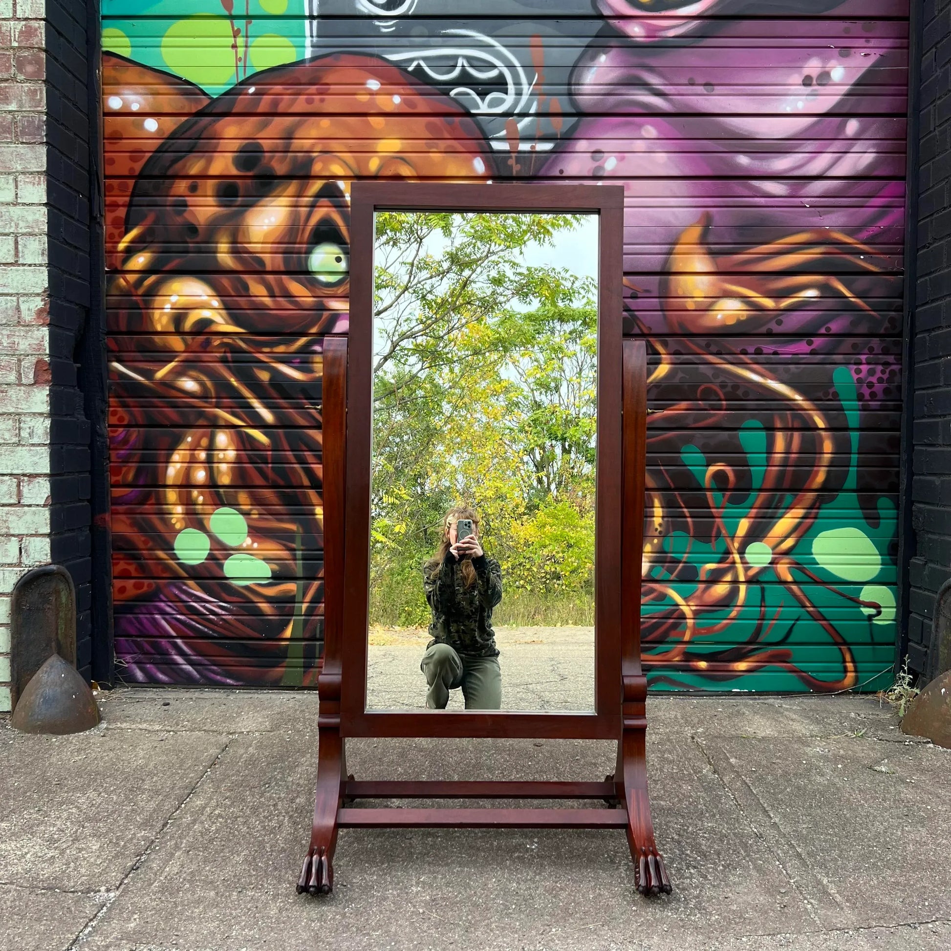 Elevate your space with the timeless charm of a Wooden Cheval Mirror, proudly crafted by the Virginia Mirror Co. Inc. in Martinsville, Virginia. This exquisite piece, adorned with distinctive clam feet, stands as a testament to meticulous craftsmanship. Stamped with history, the mirror bears the mark of November 6th, 1967, capturing a moment frozen in time. Reflecting both form and function, this cheval mirror not only adds a touch of elegance to your space but also whispers the stories of its origin. Embrace the beauty and history encapsulated in this vintage gem.